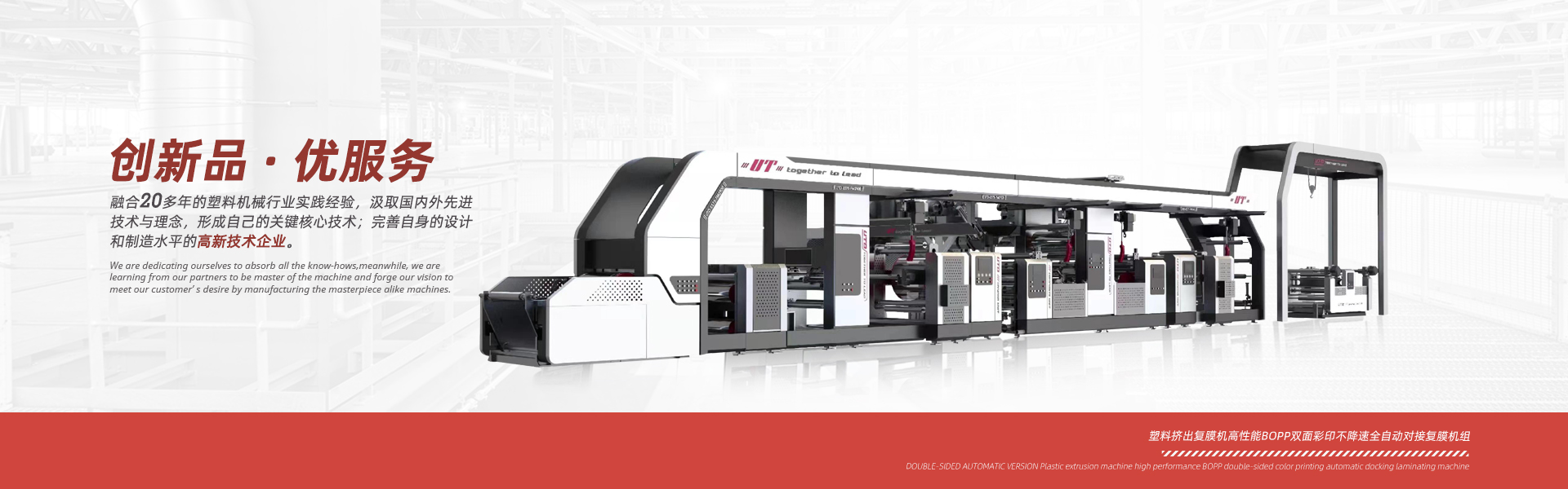 性能特點(diǎn):雙面擠出機(jī)和雙面復(fù)合機(jī),配備翻轉(zhuǎn)裝置??蓪?shí)現(xiàn)一個(gè)產(chǎn)品的一次性雙面復(fù)膜??缮a(chǎn)多種基材復(fù)合產(chǎn)品。